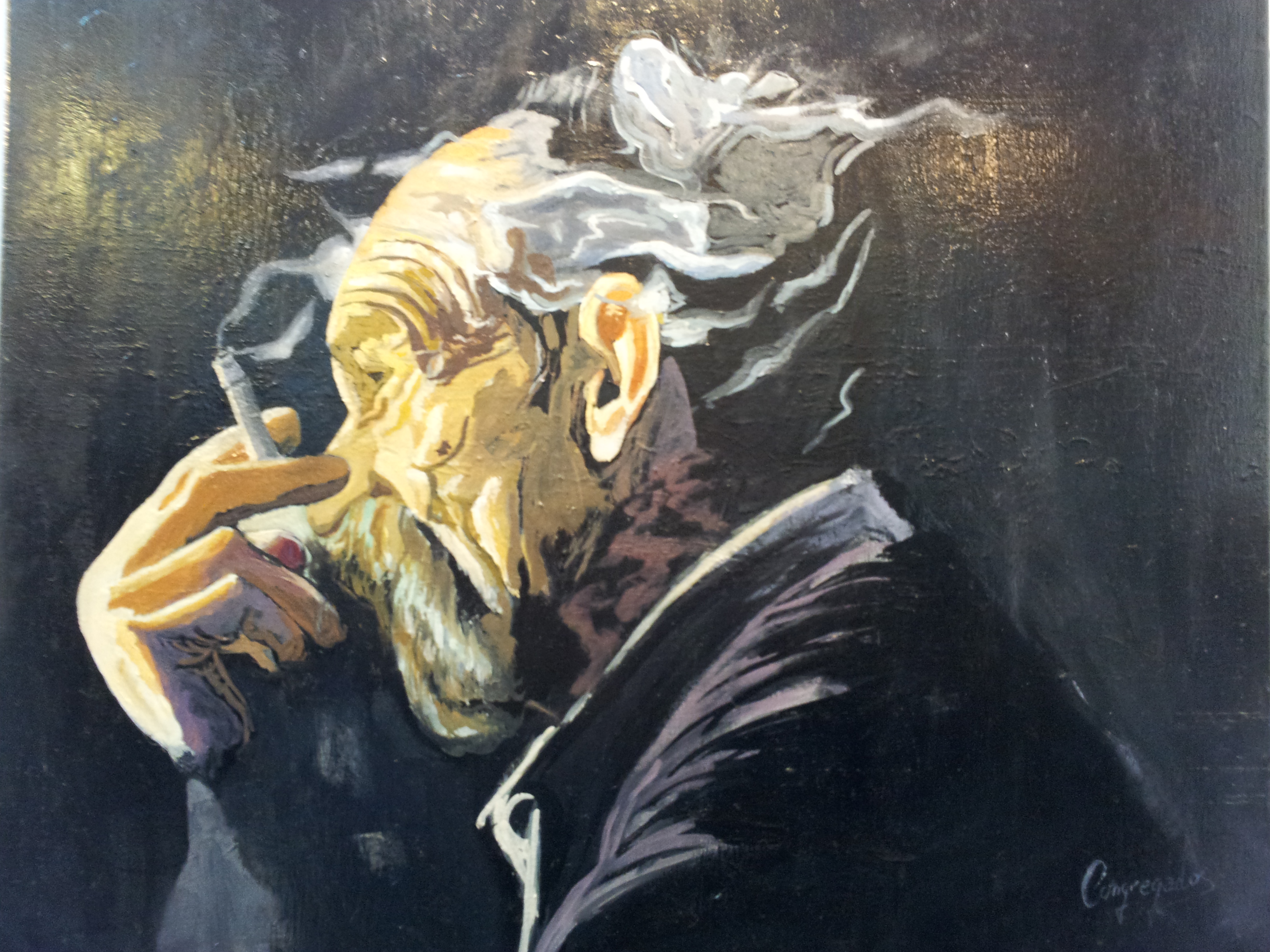 Me ha encantado ver tu pintura del viejo fumando y desgreñado…